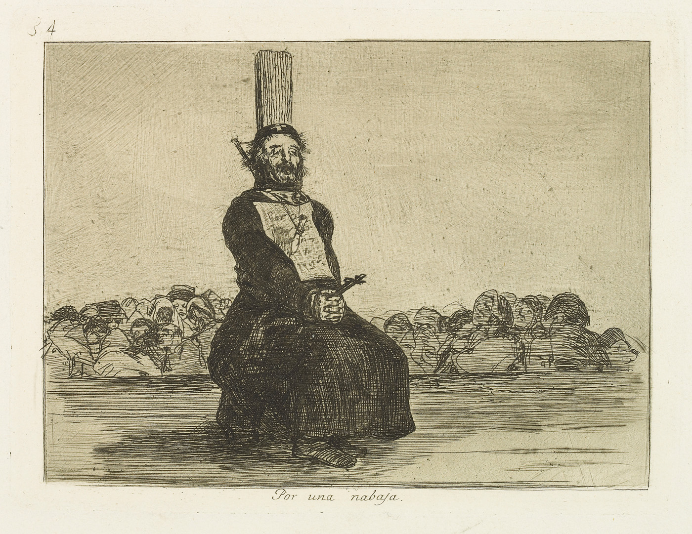 Search collection search This image is restricted, permission must be requested for reproduction. Downloading for commercial use is prohibited. If you wish to obtain rights to reproduce this image please see our Rights and Reproductions page. Francisco José de Goya y Lucientes (1746 - 1828) On account of a knife. Por una nabaja. from "The Disasters of War (Los Desastres de la Guerra)"% 1863 Etching, drypoint, burin and burnisher 9 1/2 x 12 3/4 in. (24.1 x 32.4 cm) Century: 19th Century State: First Edition Plate/Negative Date: c. 1810 - 14 Credit Line: Meadows Museum, SMU, Dallas. Algur H. Meadows Collection, MM.67.08.34 Accession Number: MM.67.08.34 Tweet More Information Submit comments about this object Also found in… Francisco José de GOYA y Lucientes Works on Paper first previous next last record 150 of 240 , "Portfolio is "Francisco José de GOYA y Lucientes"" Michael Bodycomb 03/26/2026 Bookmark: https://meadowsmuseumdallas.org/collections/pages/objects-1/info/1002