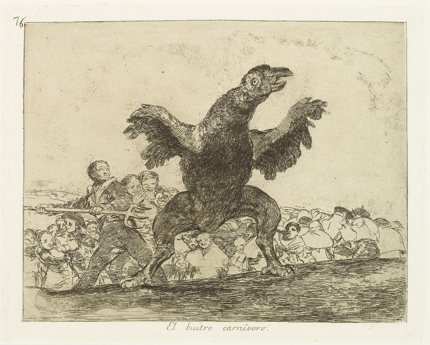 Search collection search This image is restricted, permission must be requested for reproduction. Downloading for commercial use is prohibited. If you wish to obtain rights to reproduce this image please see our Rights and Reproductions page. Francisco José de Goya y Lucientes (1746 - 1828) The carnivorous vulture. El buitre carnivoro. from "The Disasters of War (Los Desastres de la Guerra)"% 1863 Etching, drypoint (?), burin and burnisher 9 1/2 x 12 7/8 in. (24.1 x 32.5 cm) Century: 19th Century State: First Edition Plate/Negative Date: c. 1814 - 15 Credit Line: Meadows Museum, SMU, Dallas. Algur H. Meadows Collection, MM.67.08.76 Accession Number: MM.67.08.76 Tweet More Information Submit comments about this object Also found in… Francisco José de GOYA y Lucientes Works on Paper first previous next last record 502 of 805 , "Portfolio is "Works on Paper"" Michael Bodycomb 03/25/2026 Bookmark: https://meadowsmuseumdallas.org/collections/pages/objects-1/info/1044