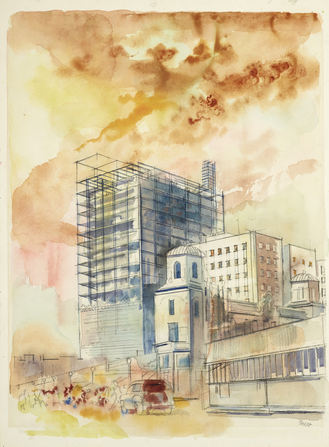 Charcoal and watercolor on paper