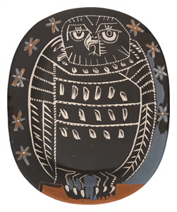 Search collection search This image is restricted, permission must be requested for reproduction. Downloading for commercial use is prohibited. If you wish to obtain rights to reproduce this image please see our Rights and Reproductions page. Pablo Picasso (1881 - 1973) Pablo Picasso (1881 - 1973) Owl (Hibou) 1955 engraved and partially glazed earthenware ceramic 14 3/4 x 12 x 1 3/8 in. (37.5 x 30.5 x 3.5 cm) Century: 20th Century Credit Line: Meadows Museum, SMU, Dallas. Gift of Catherine B. Taylor, MM.2025.04 Accession Number: MM.2025.04 Tweet More Information Submit comments about this object Also found in… Recent Acquisitions first previous next last record 54 of 59 , "Portfolio is "Recent Acquisitions"" Kevin Todora 01/16/2026 Bookmark: https://meadowsmuseumdallas.org/collections/pages/objects-1/info/4741