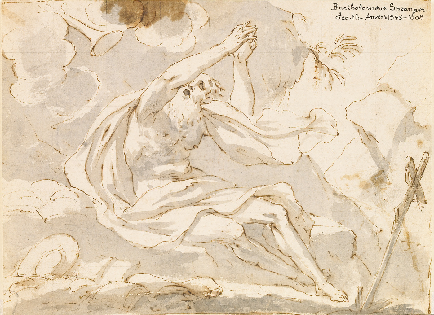 Brown ink with gray and brown wash on paper