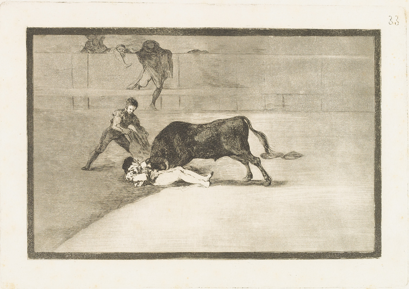 Search collection search This image is restricted, permission must be requested for reproduction. Downloading for commercial use is prohibited. If you wish to obtain rights to reproduce this image please see our Rights and Reproductions page. Francisco José de Goya y Lucientes (1746 - 1828) The unlucky death of Pepe Illo in the ring at Madrid. La desgraciada muerte de Pepe Illo en la plaza de Madrid. from "Bullfighting (La Tauromaquia)" 1816 Etching, burnished aquatint, drypoint and burin 12 1/8 x 16 5/8 in. (30.6 x 42.2 cm) Century: 19th Century State: First Edition Plate/Negative Date: c. 1814 - 16 Credit Line: Meadows Museum, SMU, Dallas. Algur H. Meadows Collection, MM.67.07.33 Accession Number: MM.67.07.33 Tweet More Information Submit comments about this object Also found in… Francisco José de GOYA y Lucientes Works on Paper first previous next last record 426 of 805 , "Portfolio is "Works on Paper"" Michael Bodycomb 02/25/2026 Bookmark: https://meadowsmuseumdallas.org/collections/pages/objects-1/info/940