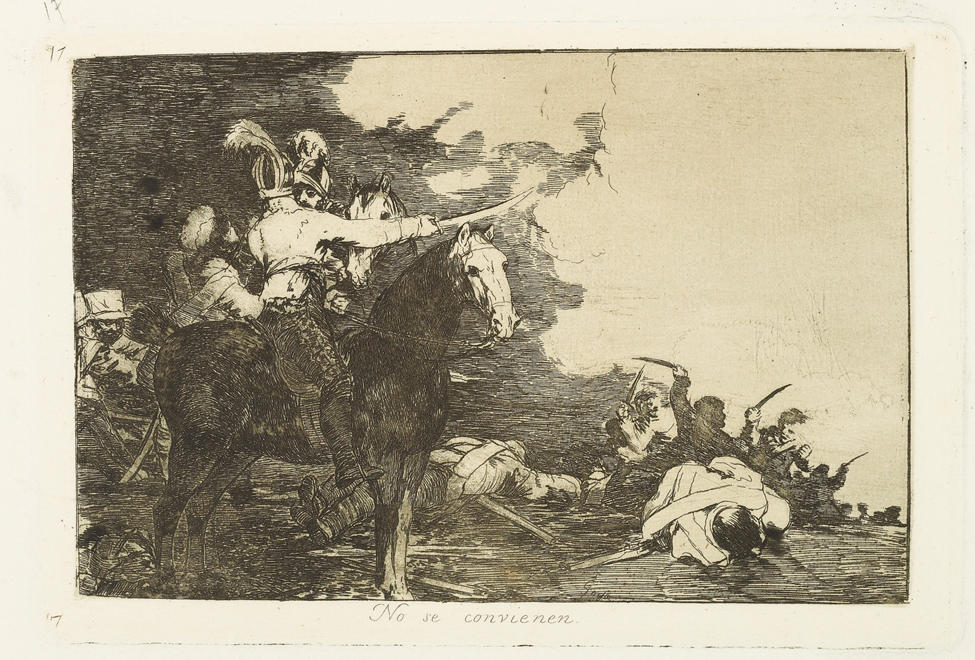 Search collection search This image is restricted, permission must be requested for reproduction. Downloading for commercial use is prohibited. If you wish to obtain rights to reproduce this image please see our Rights and Reproductions page. Francisco José de Goya y Lucientes (1746 - 1828) They do not agree. No se convienen. from "The Disasters of War (Los Desastres de la Guerra)" 1863 Etching, drypoint, burin and burnisher 9 1/2 x 12 7/8 in. (24.1 x 32.5 cm) Century: 19th Century State: First Edition Plate/Negative Date: c. 1810 - 14 Credit Line: Meadows Museum, SMU, Dallas. Algur H. Meadows Collection, MM.67.08.17 Accession Number: MM.67.08.17 Tweet More Information Submit comments about this object Also found in… Francisco José de GOYA y Lucientes Works on Paper first previous next last record 443 of 805 , "Portfolio is "Works on Paper"" Michael Bodycomb 02/25/2026 Bookmark: https://meadowsmuseumdallas.org/collections/pages/objects-1/info/985