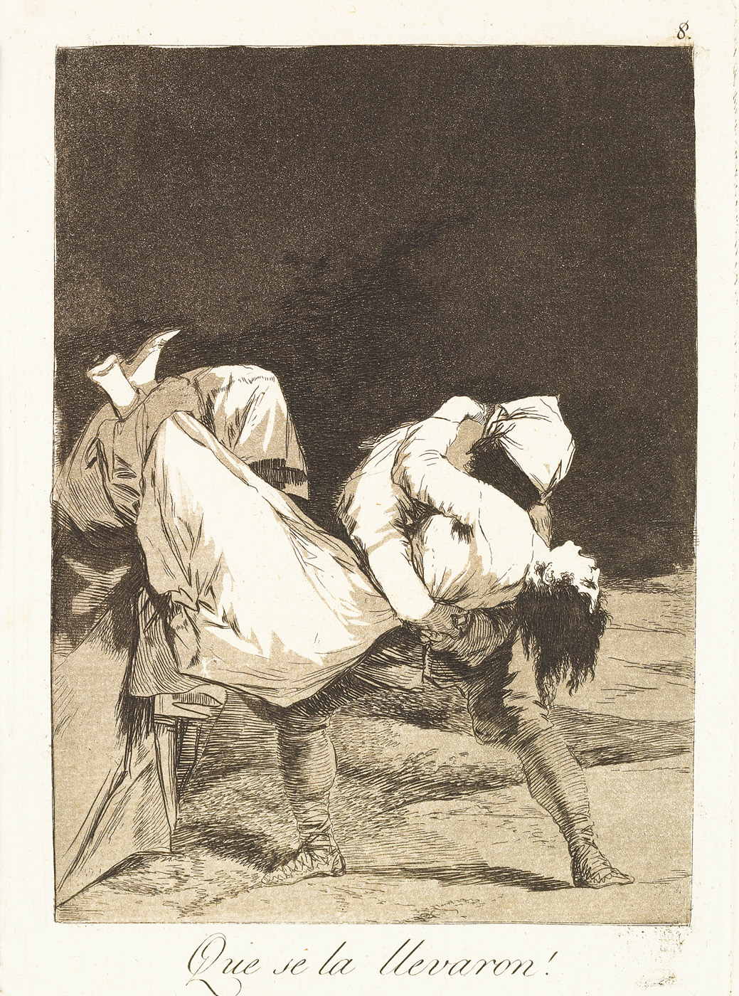 Search collection search This image is restricted, permission must be requested for reproduction. Downloading for commercial use is prohibited. If you wish to obtain rights to reproduce this image please see our Rights and Reproductions page. Francisco José de Goya y Lucientes (1746 - 1828) They carried her off! Que se la llevaron! from "The Caprices (Los Caprichos)"% 1799 Etching and aquatint 11 5/8 x 8 in. (29.5 x 20.3 cm) Century: 18th Century State: First Edition Plate/Negative Date: c. 1797 - 98 Credit Line: Meadows Museum, SMU, Dallas. Algur H. Meadows Collection, MM.67.06.08 Accession Number: MM.67.06.08 Tweet More Information Submit comments about this object Also found in… Francisco José de GOYA y Lucientes Works on Paper first previous next last record 11 of 240 , "Portfolio is "Francisco José de GOYA y Lucientes"" Michael Bodycomb 03/25/2026 Bookmark: https://meadowsmuseumdallas.org/collections/pages/objects-1/info/835
