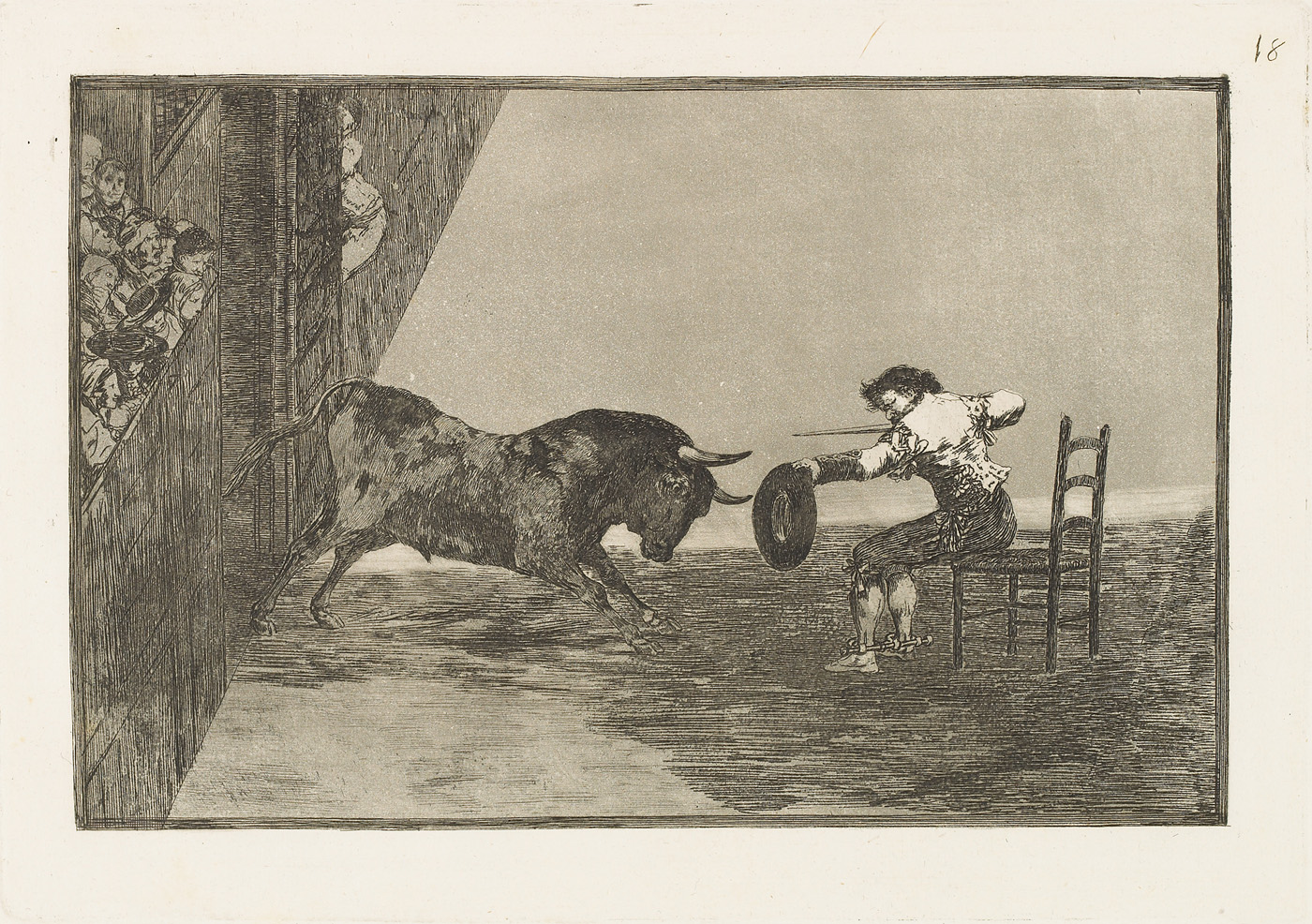 Search collection search This image is restricted, permission must be requested for reproduction. Downloading for commercial use is prohibited. If you wish to obtain rights to reproduce this image please see our Rights and Reproductions page. Francisco José de Goya y Lucientes (1746 - 1828) The daring of Martincho in the ring at Saragossa. Temeridad de Martincho en la plaza de Zaragoza. from "Bullfighting (La Tauromaquia)" 1816 Etching, burnished aquatint and drypoint 11 7/8 x 16 5/8 in. (30.2 x 42.2 cm) Century: 19th Century State: First Edition Plate/Negative Date: c. 1814 - 16 Credit Line: Meadows Museum, SMU, Dallas. Algur H. Meadows Collection, MM.67.07.18 Accession Number: MM.67.07.18 Tweet More Information Submit comments about this object Also found in… Francisco José de GOYA y Lucientes Works on Paper first previous next last record 116 of 243 , "Related to "Francisco José de Goya y Lucientes"" Michael Bodycomb 02/24/2026 Bookmark: https://meadowsmuseumdallas.org/collections/pages/objects-1/info/925