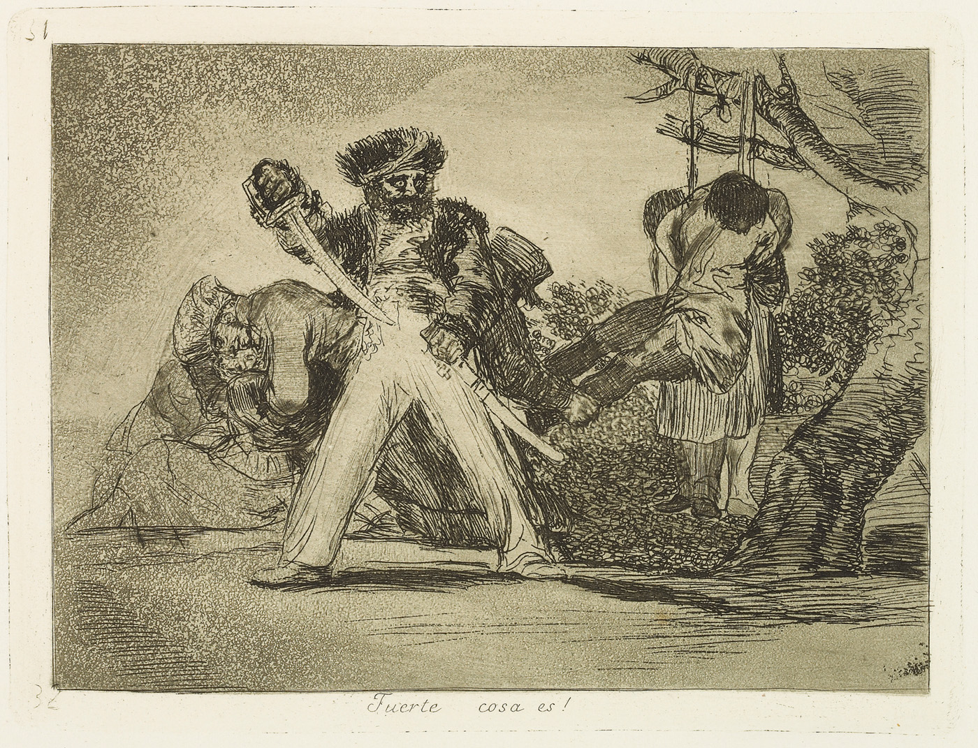 Search collection search This image is restricted, permission must be requested for reproduction. Downloading for commercial use is prohibited. If you wish to obtain rights to reproduce this image please see our Rights and Reproductions page. Francisco José de Goya y Lucientes (1746 - 1828) That's tough! Fuerte cosa es! from "The Disasters of War (Los Desastres de la Guerra)"% 1863 Etching, burnished aquatint and drypoint 9 1/2 x 12 3/4 in. (24.1 x 32.4 cm) Century: 19th Century State: First Edition Plate/Negative Date: c. 1810 - 14 Credit Line: Meadows Museum, SMU, Dallas. Algur H. Meadows Collection, MM.67.08.31 Accession Number: MM.67.08.31 Tweet More Information Submit comments about this object Also found in… Francisco José de GOYA y Lucientes Works on Paper first previous next last record 147 of 240 , "Portfolio is "Francisco José de GOYA y Lucientes"" Michael Bodycomb 03/25/2026 Bookmark: https://meadowsmuseumdallas.org/collections/pages/objects-1/info/999