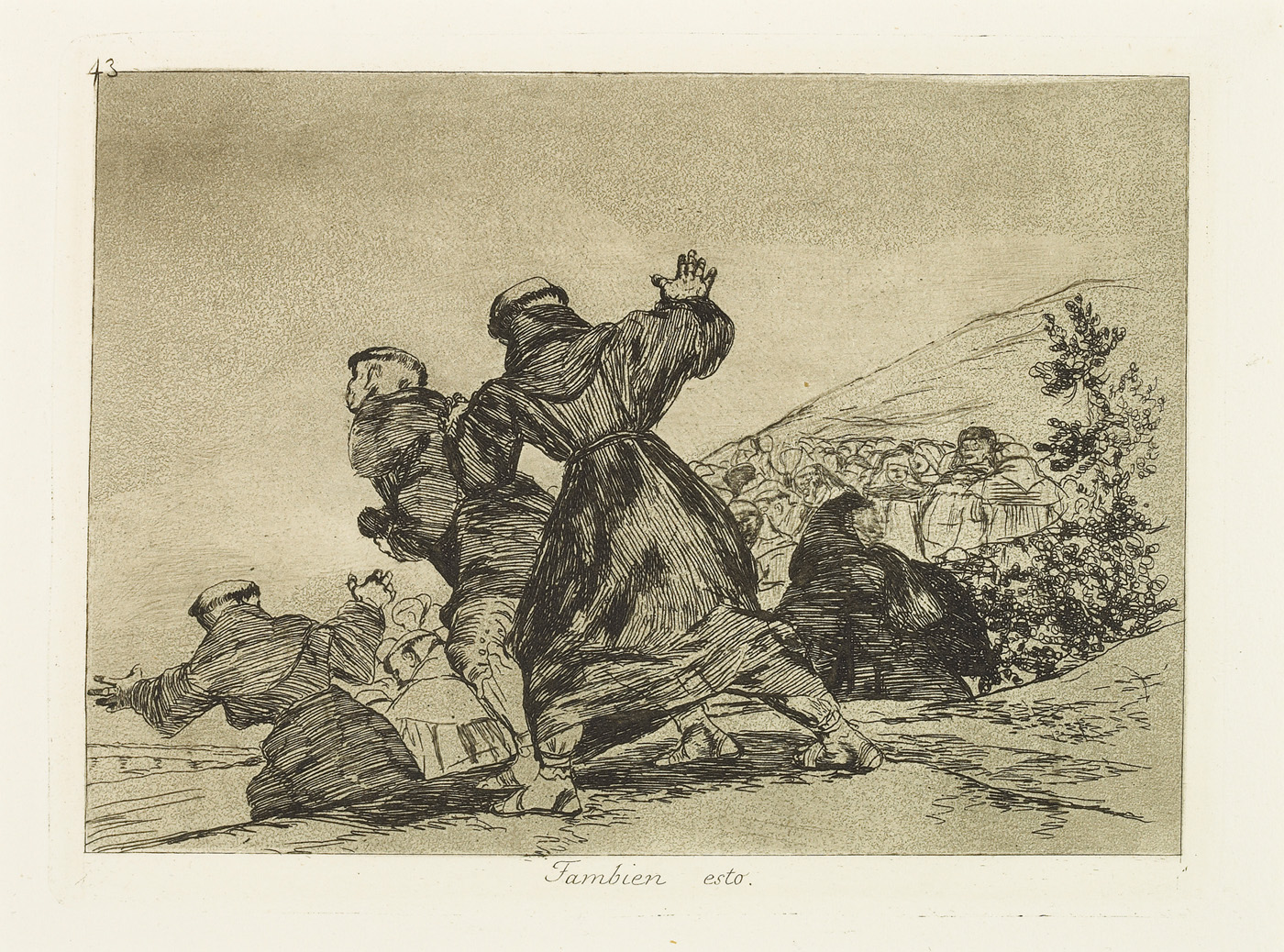 Search collection search This image is restricted, permission must be requested for reproduction. Downloading for commercial use is prohibited. If you wish to obtain rights to reproduce this image please see our Rights and Reproductions page. Francisco José de Goya y Lucientes (1746 - 1828) This too. Tambien esto. from "The Disasters of War (Los Desastres de la Guerra)"% 1863 Etching, burnished aquatint and burnisher 9 1/2 x 12 5/8 in. (24.1 x 32.1 cm) Century: 19th Century State: First Edition Plate/Negative Date: c. 1810 - 14 Credit Line: Meadows Museum, SMU, Dallas. Algur H. Meadows Collection, MM.67.08.43 Accession Number: MM.67.08.43 Tweet More Information Submit comments about this object Also found in… Francisco José de GOYA y Lucientes Works on Paper first previous next last record 159 of 240 , "Portfolio is "Francisco José de GOYA y Lucientes"" Michael Bodycomb 03/26/2026 Bookmark: https://meadowsmuseumdallas.org/collections/pages/objects-1/info/1011