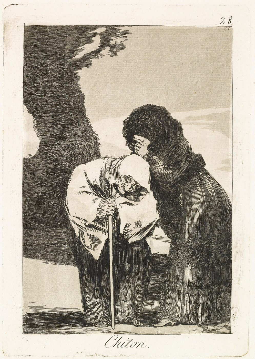 Search collection search This image is restricted, permission must be requested for reproduction. Downloading for commercial use is prohibited. If you wish to obtain rights to reproduce this image please see our Rights and Reproductions page. Francisco José de Goya y Lucientes (1746 - 1828) Hush. Chiton. from "The Caprices (Los Caprichos)"% 1799 Etching, aquatint and burin 11 5/8 x 8 in. (29.5 x 20.3 cm) Century: 18th Century State: First Edition Plate/Negative Date: c. 1797 - 98 Credit Line: Meadows Museum, SMU, Dallas. Algur H. Meadows Collection, MM.67.06.28 Accession Number: MM.67.06.28 Tweet More Information Submit comments about this object Also found in… Francisco José de GOYA y Lucientes Works on Paper first previous next last record 31 of 240 , "Portfolio is "Francisco José de GOYA y Lucientes"" Michael Bodycomb 04/06/2026 Bookmark: https://meadowsmuseumdallas.org/collections/pages/objects-1/info/855
