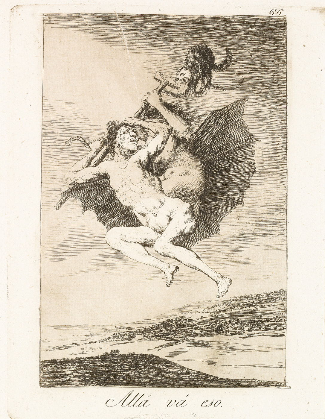 Search collection search This image is restricted, permission must be requested for reproduction. Downloading for commercial use is prohibited. If you wish to obtain rights to reproduce this image please see our Rights and Reproductions page. Francisco José de Goya y Lucientes (1746 - 1828) There it goes. Allá vá eso. from "The Caprices (Los Caprichos)"% 1799 Etching, aquatint and drypoint 11 5/8 x 8 in. (29.5 x 20.3 cm) Century: 18th Century State: First Edition Plate/Negative Date: c. 1797 - 98 Credit Line: Meadows Museum, SMU, Dallas. Algur H. Meadows Collection, MM.67.06.66 Accession Number: MM.67.06.66 Tweet More Information Submit comments about this object Also found in… Francisco José de GOYA y Lucientes Works on Paper first previous next last record 379 of 805 , "Portfolio is "Works on Paper"" Michael Bodycomb 03/25/2026 Bookmark: https://meadowsmuseumdallas.org/collections/pages/objects-1/info/893