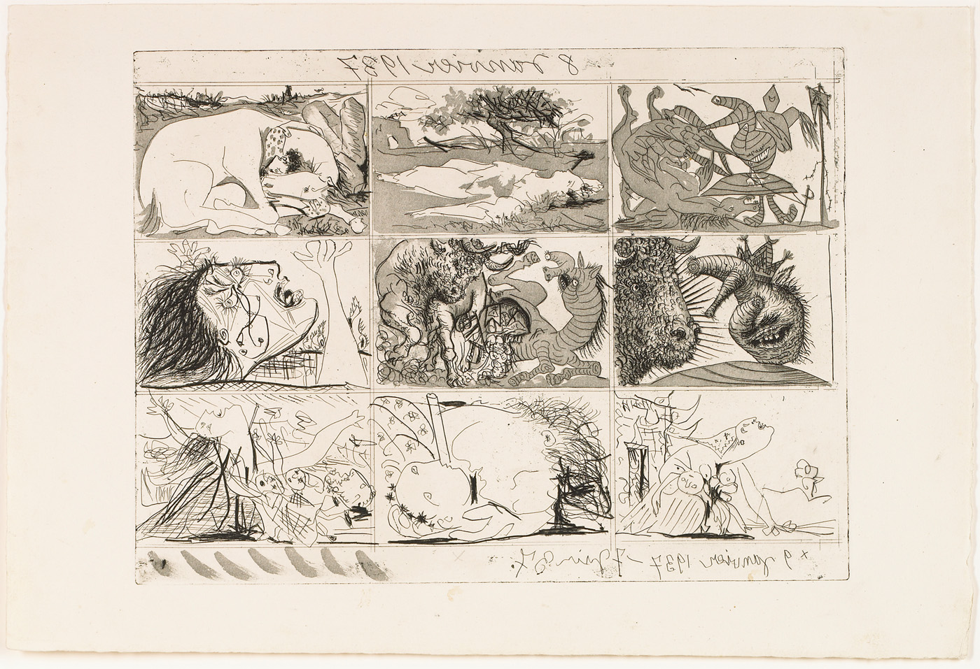 Search collection search This image is restricted, permission must be requested for reproduction. Downloading for commercial use is prohibited. If you wish to obtain rights to reproduce this image please see our Rights and Reproductions page. Pablo Picasso (1881 - 1973) The Dream and Lie of Franco II, State V Sueño y Mentira de Franco, II from "The Dream and Lie of Franco (Sueño y Mentira de Franco)"% 1937 Etching with aquatint on Montval laid paper 12 1/2 x 16 5/8 in. (31.8 x 42.2 cm) Century: 20th Century State: Fifth State Credit Line: Meadows Museum, SMU, Dallas. Museum purchase, Meadows Museum Acquisition Fund, MM.95.05d Accession Number: MM.95.05d Tweet More Information Submit comments about this object Also found in… Pablo PICASSO Works on Paper first previous next last record 616 of 805 , "Portfolio is "Works on Paper"" 03/25/2026 Bookmark: https://meadowsmuseumdallas.org/collections/pages/objects-1/info/1168