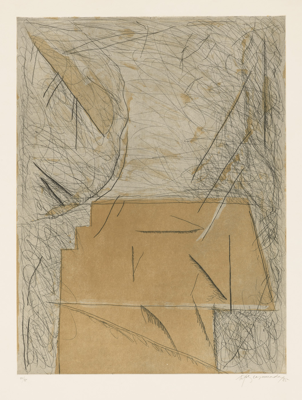 Search collection search This image is restricted, permission must be requested for reproduction. Downloading for commercial use is prohibited. If you wish to obtain rights to reproduce this image please see our Rights and Reproductions page. Albert Ràfols-Casamada (1923 - 2009) Abril-2 (Brown) from "Argonautica Suite"% 1985 Etching on paper 39 3/4 x 27 3/4 in. (101 x 70.5 cm) Century: 20th Century State: Ed. 74/75 Credit Line: Meadows Museum, SMU, Dallas. Gift of Robert N. McNea in memory of Frankin E. Moss, MM.91.02.02 Accession Number: MM.91.02.02 Tweet More Information Submit comments about this object Also found in… Works on Paper first previous next last record 631 of 805 , "Portfolio is "Works on Paper"" 03/25/2026 Bookmark: https://meadowsmuseumdallas.org/collections/pages/objects-1/info/1082