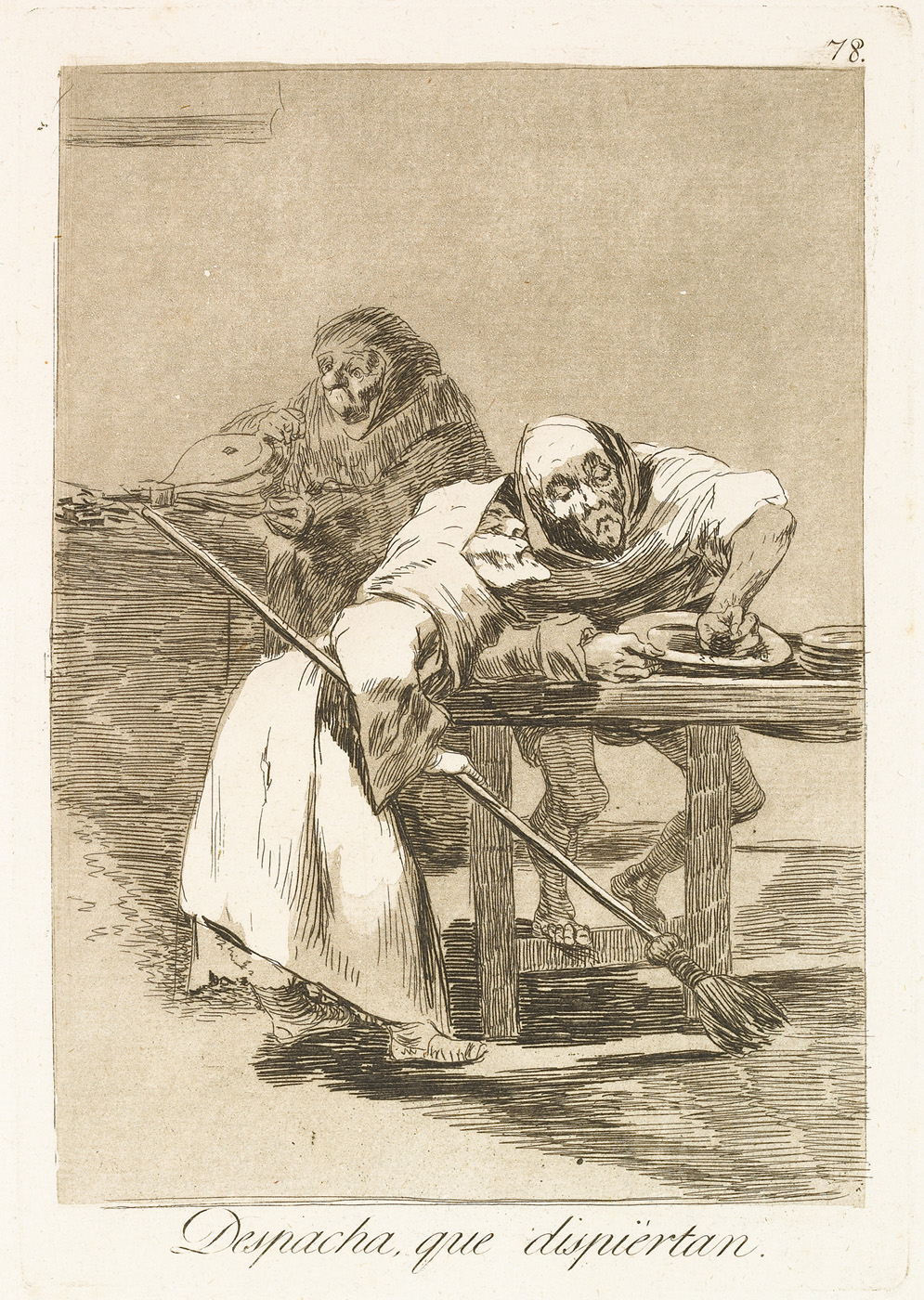 Search collection search This image is restricted, permission must be requested for reproduction. Downloading for commercial use is prohibited. If you wish to obtain rights to reproduce this image please see our Rights and Reproductions page. Francisco José de Goya y Lucientes (1746 - 1828) Be quick, they are waking up. Despacha, que dispiertan. from "The Caprices (Los Caprichos)" 1799 Etching and burnished aquatint 11 5/8 x 8 in. (29.5 x 20.3 cm) Century: 18th Century State: First Edition Plate/Negative Date: c. 1797 - 98 Credit Line: Meadows Museum, SMU, Dallas. Algur H. Meadows Collection, MM.67.06.78 Accession Number: MM.67.06.78 Tweet More Information Submit comments about this object Also found in… Francisco José de GOYA y Lucientes Works on Paper first previous next last record 97 of 243 , "Related to "Francisco José de Goya y Lucientes"" Michael Bodycomb 02/24/2026 Bookmark: https://meadowsmuseumdallas.org/collections/pages/objects-1/info/905